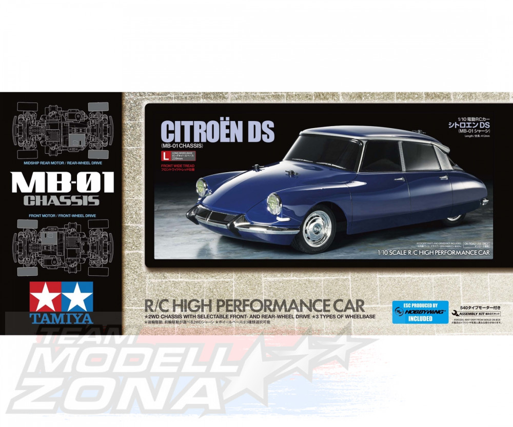 Ez az összeszerelőkészlet a Citroën DS elsőkerék-meghajtású szedán R/C modelljét alkotja meg, amely az 1999-es Évszázad Autója díjátadón harmadik helyezést ért el. 1955-ben Párizsban jelent meg a Citroën DS, amelyet aerodinamikus kialakítása miatt néha „űrhajónak” is neveztek. Ez a modell művészien ragadja meg ezt a legendás stílust egy könnyű polikarbonát karosszériával, amely az MB-01 alváz kompakt 2WD-jén alapul. Krómozott kerekekhez radiál gumiabroncsok tartoznak.