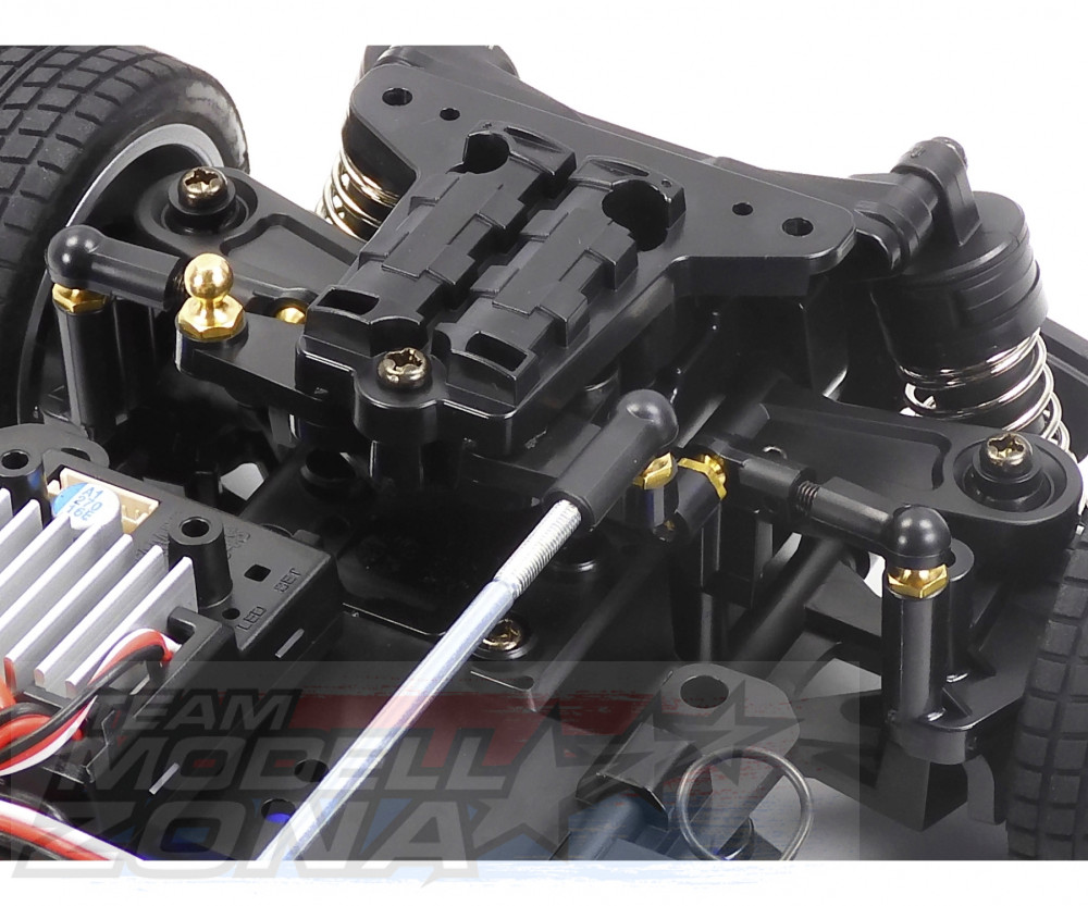 Hossz: 412 mm, szélesség: 197 mm, magasság: 137 mm Tengelytáv: 239 mm (hosszú) Nyomvonal: 148 mm (elöl), 140 mm (hátul) Gumiabroncs szélessége/átmérője: 25/59 mm (elöl és hátul) Kád alakú alváz Első-középmotor, elsőkerék-hajtás 4-es kúpkerekes differenciálmű 3 részes kormányösszekötő rúd 4 kerék dupla lengőkaros felfüggesztése Súrlódó lengéscsillapítók Áttétel = 5.83:1 (29T fogaskerék készlet használatával) 540-es típusú motor ESC szabályzóval.