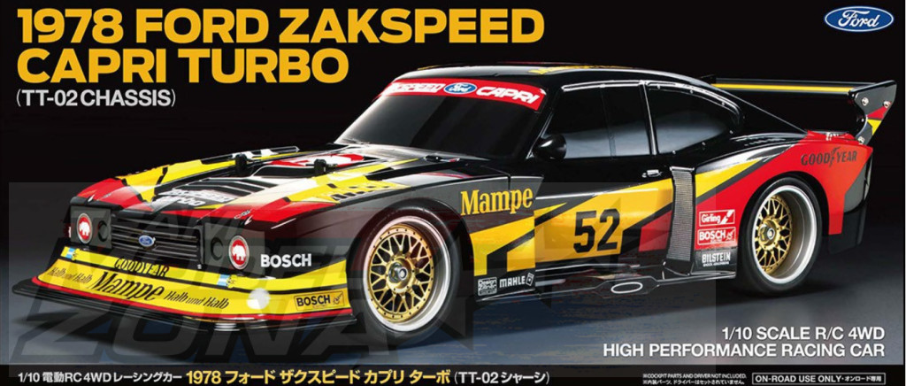 • Az 1978-as Ford Zakspeed Capri Turbo jellegzetes formáját egy könnyű, merev, 1,0 mm vastag polikarbonát karosszéria ragadja meg.