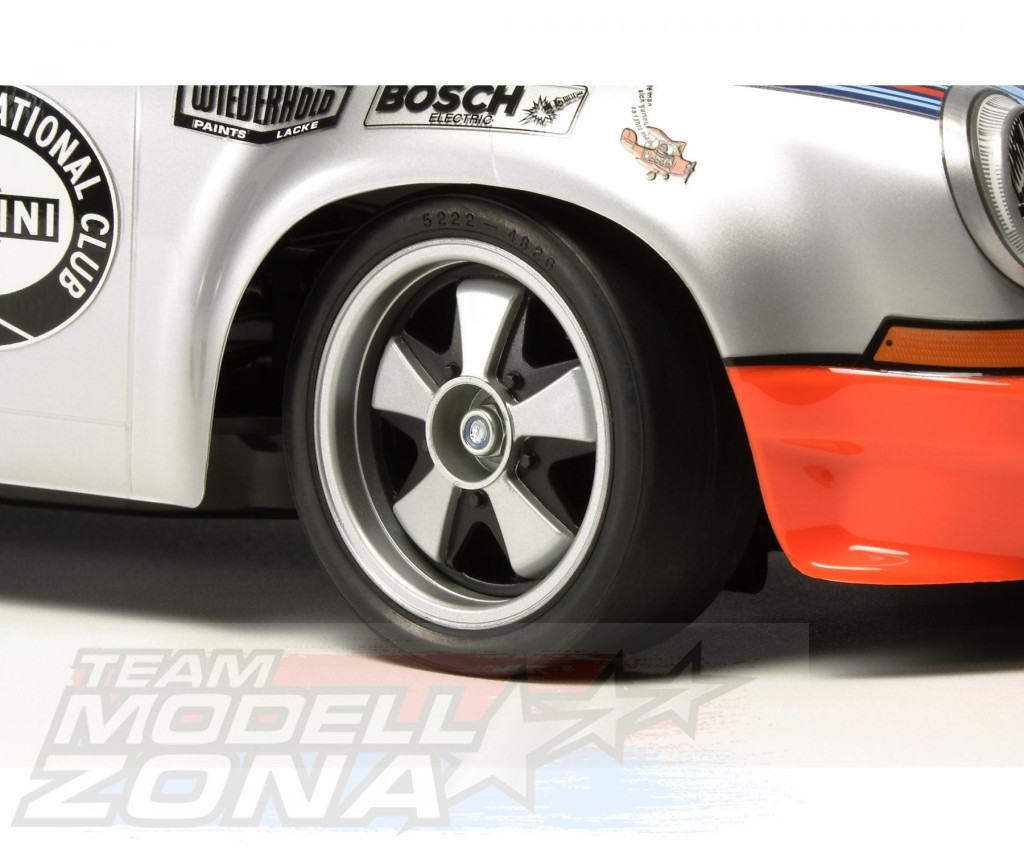 The Porsche 911 Carrera RSR joins the rapidly-expanding TT-02 chassis line-up. It is a legendary Group 4 car which had a body weighing just 900kg with a 300hp-plus horizontally opposed 6-cylinder engine, and still holds a place in fans’ hearts today thanks to its exploits with racing teams the world over. In 1973, the year of its release, it won the European GT Championship, plus the renowned 24 Hours of Daytona and 12 Hours of Sebring races. The works prototype in predominantly silver livery with the Martini stripe also took the checkered flag in the famed Targa Florio race.